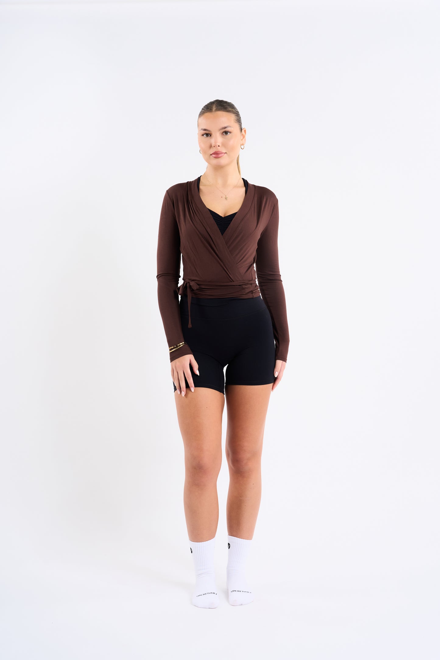 The wrap top is perfect on it's own or as an added layer for those workouts.