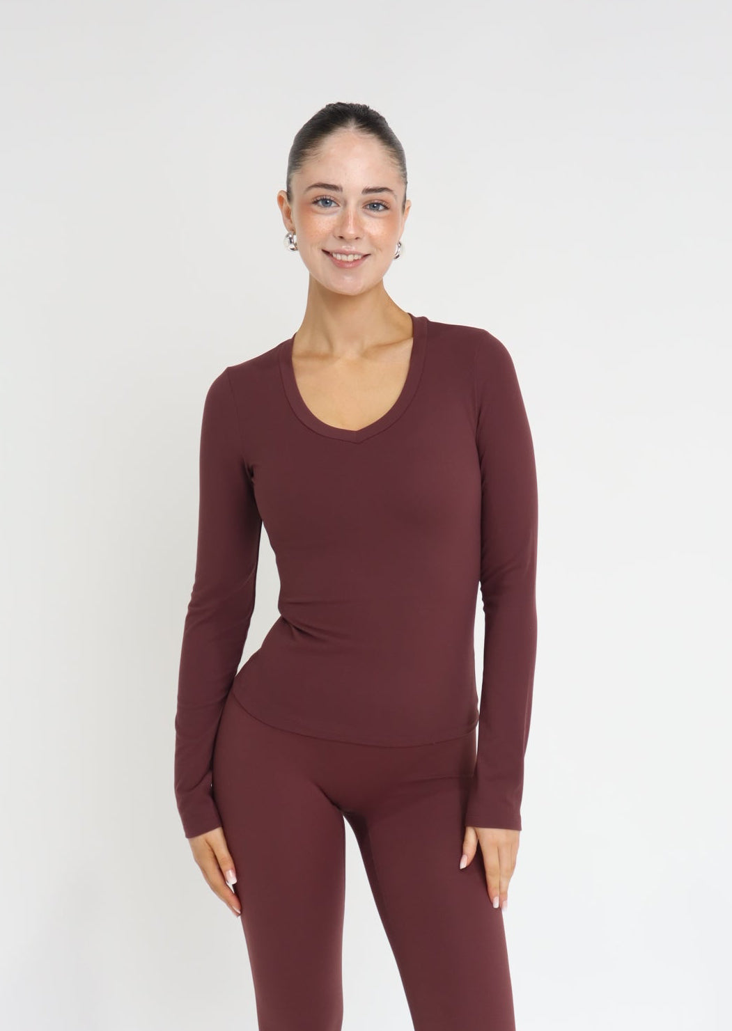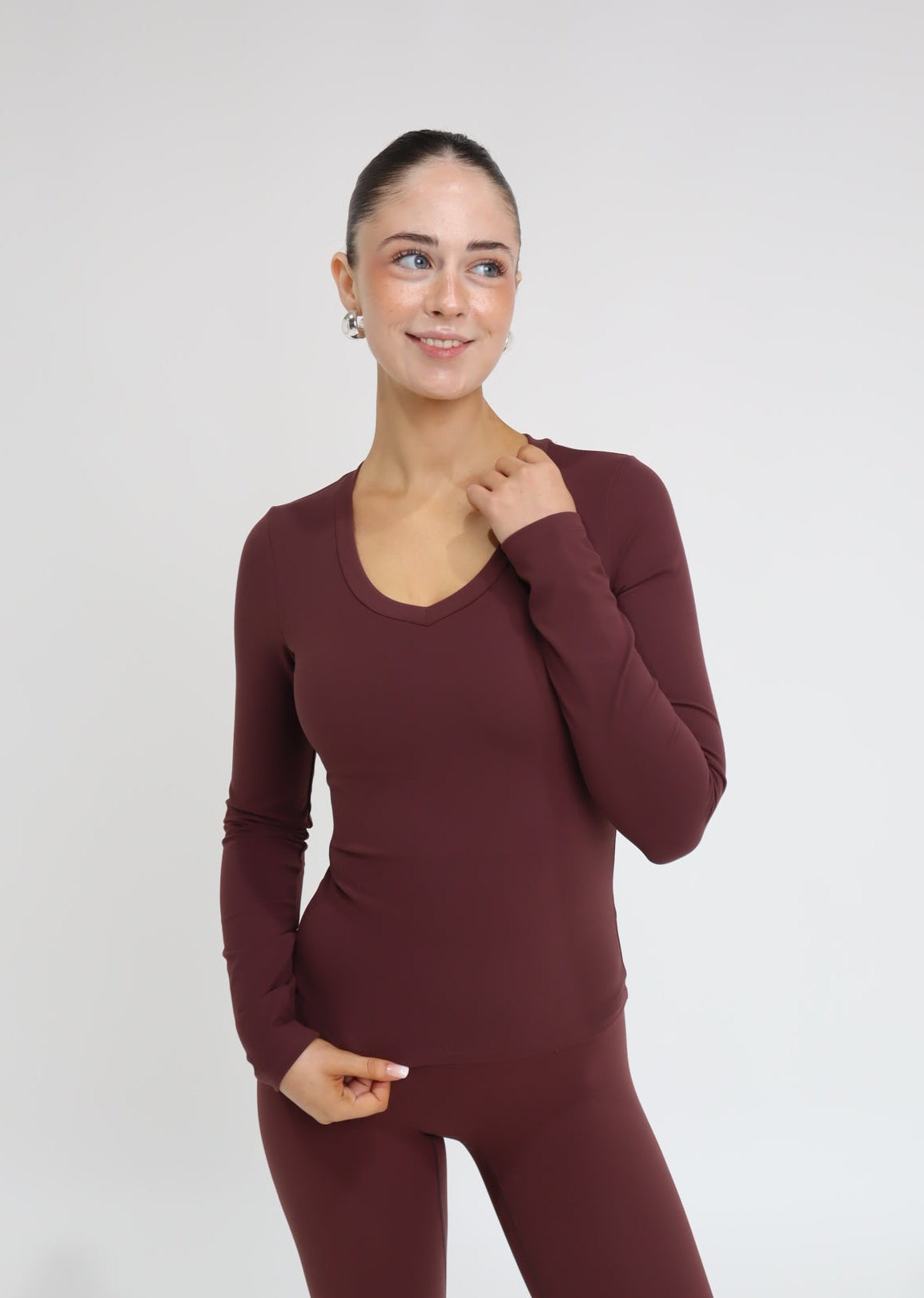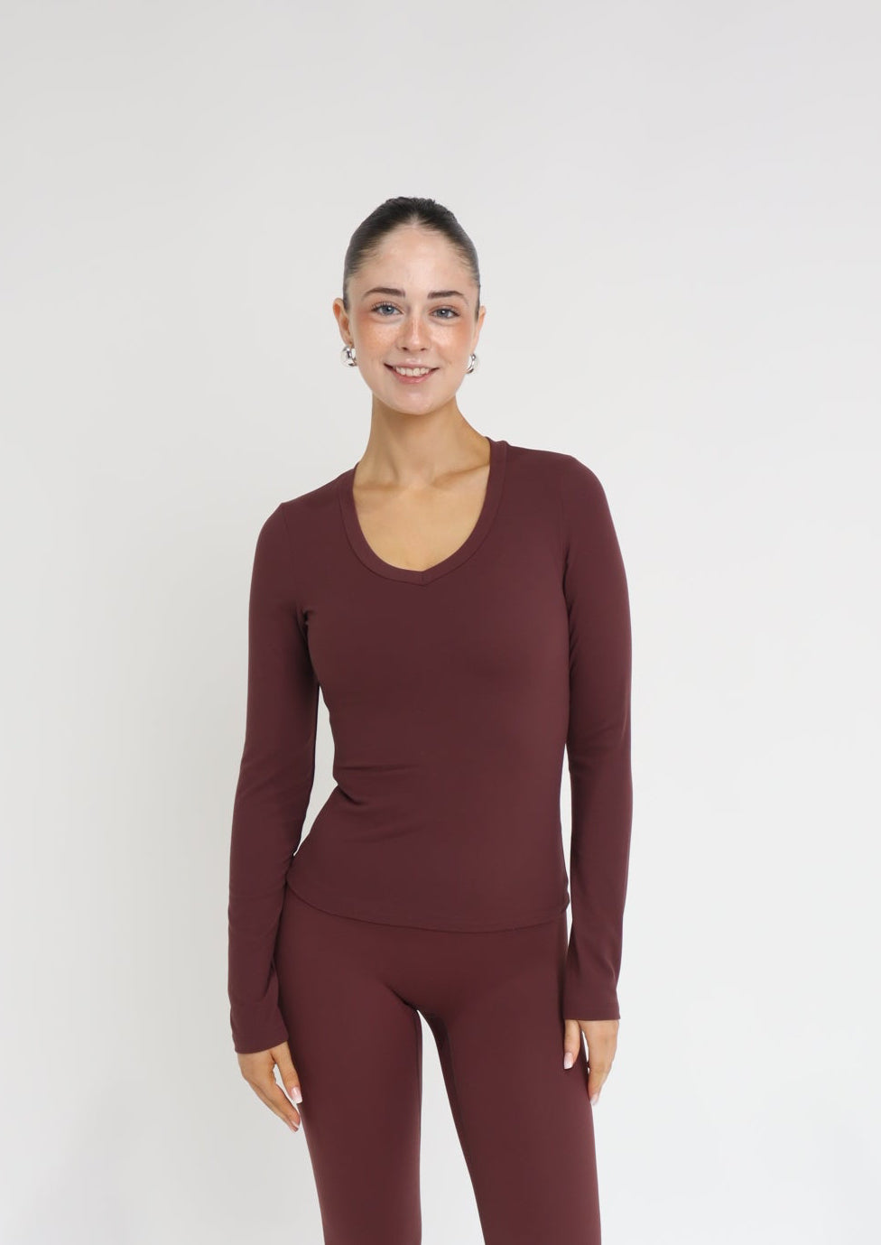 The Burgundy Long Sleeve is soft, breathable and comfortable, perfect for workouts or rest days. The fitted style is designed to give a sculpted look, along with the minimalist logo on the neck making it the perfect basic for any activity.